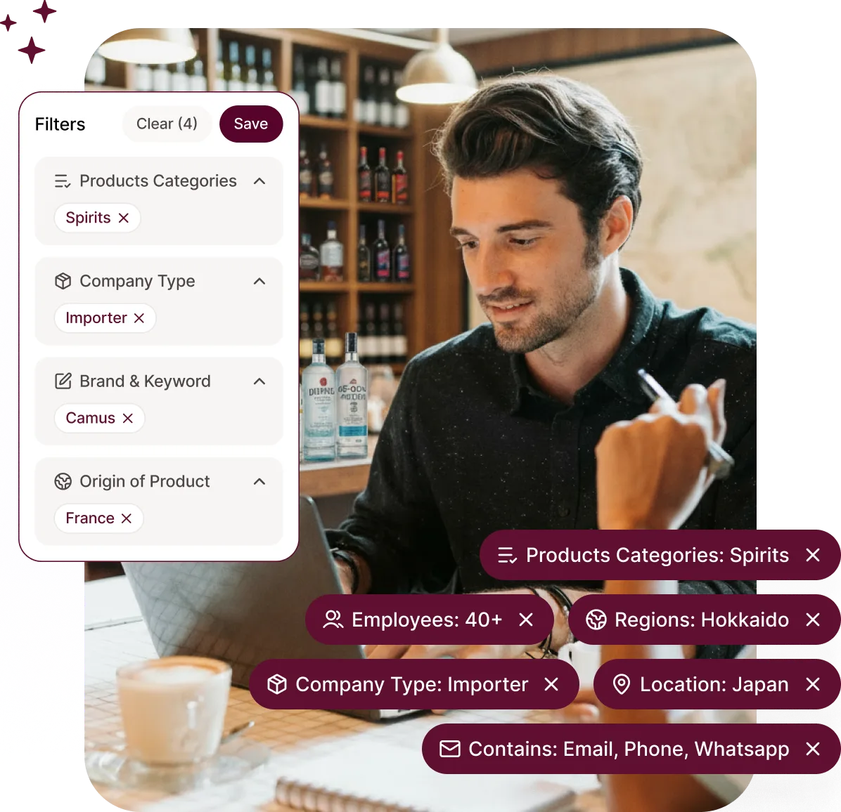 These filters help you quickly identify the most relevant buyers for your products and focus your outreach on decision-makers who actively source wines in your target markets.